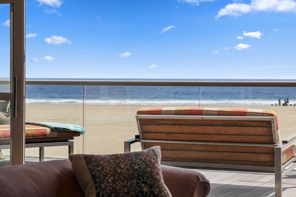 A wide entryway leads to a breathtaking view of the ocean. Open spaces allow for a seamless, indoor-outdoor beachfront flow.