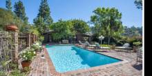 According to Real Estalker, Sheridan listed the home approximately six months ago, and has owned the property since “at least the mid-1990s.” The main house has three bedrooms and three bathrooms, tiled interior space, a sky-lit main living/dining room with a vaulted ceiling, a large brick fireplace, French doors, built-in bar and barbeque station, a formal dining room, a kitchen with stainless steel appliances a Viking brand range, and more. The master bedroom features double entry doors, large walk-in closets, a vaulted ceiling, an exposed brick terrace, a bathroom with blue tile counters, floors and walls, a separate jetted tub and sheepskin rugs.
