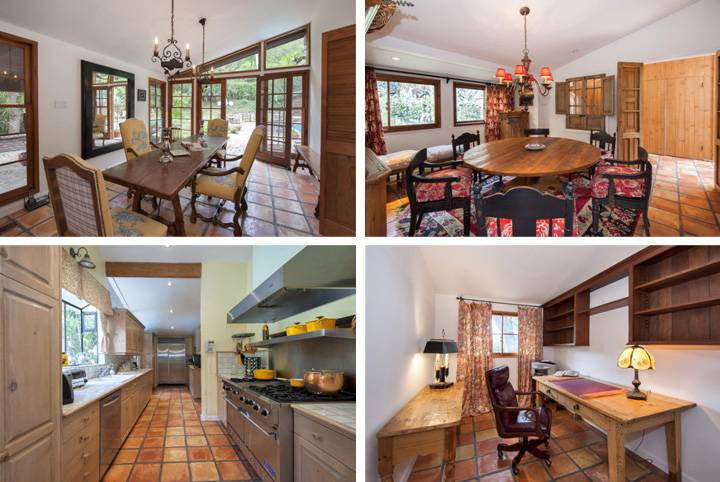 According to Real Estalker, Sheridan listed the home approximately six months ago, and has owned the property since “at least the mid-1990s.” The main house has three bedrooms and three bathrooms, tiled interior space, a sky-lit main living/dining room with a vaulted ceiling, a large brick fireplace, French doors, built-in bar and barbeque station, a formal dining room, a kitchen with stainless steel appliances a Viking brand range, and more. The master bedroom features double entry doors, large walk-in closets, a vaulted ceiling, an exposed brick terrace, a bathroom with blue tile counters, floors and walls, a separate jetted tub and sheepskin rugs.