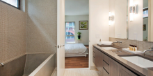 The developer notes in a recent press release, “Built with close attention to luxury living, these homes are complete with top-of-the-line condo finishes. The large open kitchens have Italian Schiffini custom built glass white cabinets with aluminum back splashes and granite counter tops, a Bosch oven with additional warming tray and 5 burner range, Faber exhaust, Liebherr refrigerator, garbage disposal, wine cooler, and Krauss sinks with Grohe faucets. The layout features open kitchens that are accessible to the dining area and perfect for entertaining guests.”