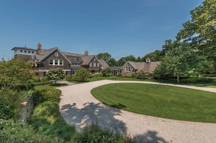 Built in 2007, the shingled beauty features five bedrooms and five full and three half baths; an elegant, old-fashioned wine cellar; and a smattering of common spaces, including a paneled library and an art gallery.