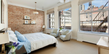 Described as “architecturally significant,” this famous home also hosts a key-lock elevator; custom recessed lighting and woodwork; an exposed brick wall; strip Red Oak floors, crown, and baseboard moldings; three-zone central air conditioning; and a built-in sound system. Views of downtown Manhattan are courtesy of the large windows that are all throughout the home and flood each room with s ton of natural light.