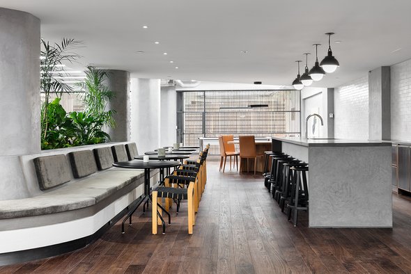 Designed by Robert McGinley Design, the interiors of new luxury rental building EVGB pay homage to its surrounding East Village neighborhood, known for its punk rock era, graffiti and selection of dive bars. A continuing theme throughout the building is the chicken wire glass that accentuates the public spaces from the ground floor lobby to the residential corridors harkening back to pre-war buildings such as industrial factories and firehouses.