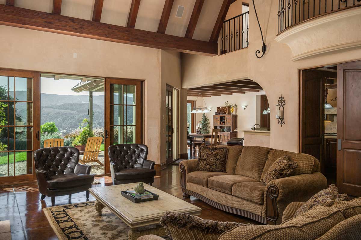 Upstairs, the generous family room with a media screen, bedrooms, and balconies offer captivating views of the Santa Lucia Mountains.
