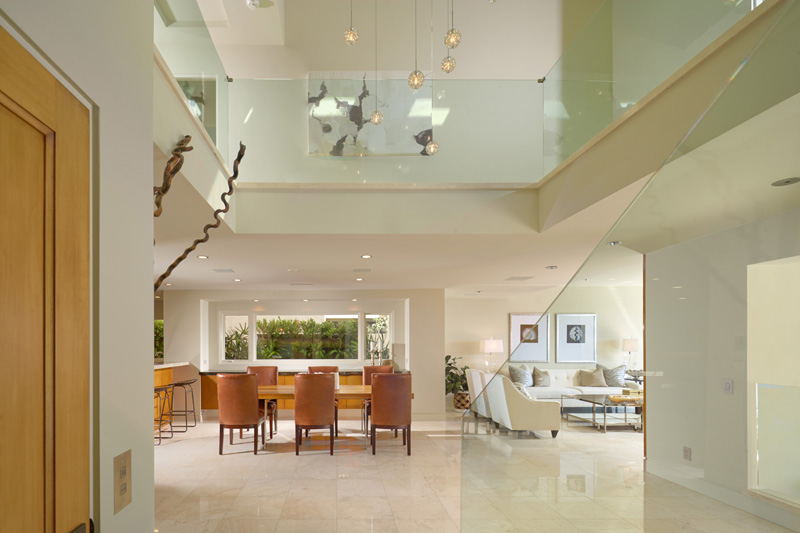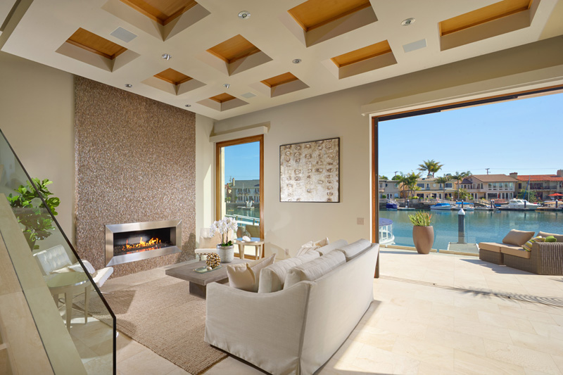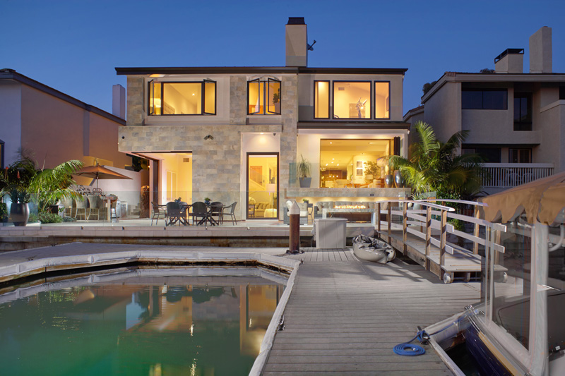 Located on Newport Harbor’s Promontory Bay and completely remodeled in 2011 with an eye for details, the home has an exciting palette of finish materials that includes glass, stainless steel, marble and quartz stonework throughout and retracting walls of glass doors.