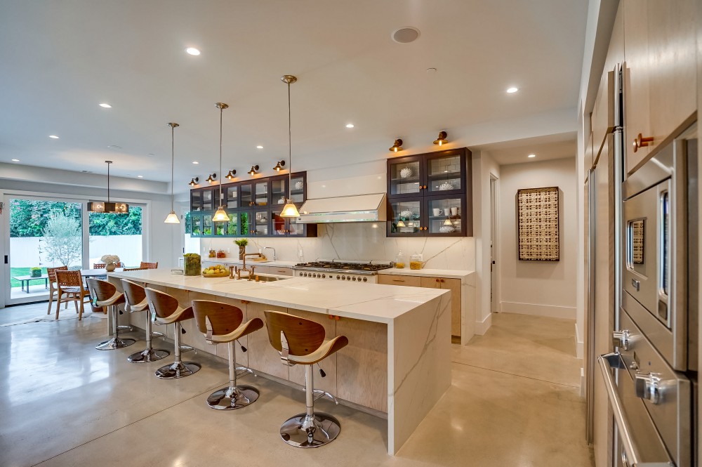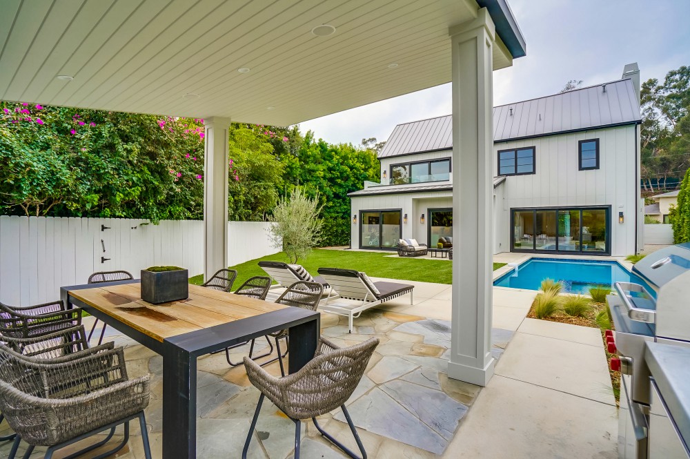 An entertainer’s paradise with all the elements of transitional architecture blended to the laid-back canyon lifestyle. This one-of-a-kind 5 bed, 6 bath home was thoughtfully designed to fit the lot and location with a large private yard and pool. Step into natural light and a “gallery-like” floor plan with polished concrete floors and plenty of windows. Experience a calm and serene understated elegance from the open-style living and dining room with fireplace to the family room, kitchen and breakfast area; all overlooking lush landscape. Additional downstairs service kitchen, office, powder room, mudroom, and guest suite. Take time to check out the gorgeous 8 burner custom Viking antique reproduction stove, perfect for the canyon kitchen. Upstairs opens to a loft area with 4 skylights. Wide plank hardwood floor throughout leads to 3 bedrooms, each with private bath. Master suite with fireplace, vaulted ceiling, large balcony, and “retro-enhanced” on suite bath with walk in closet.