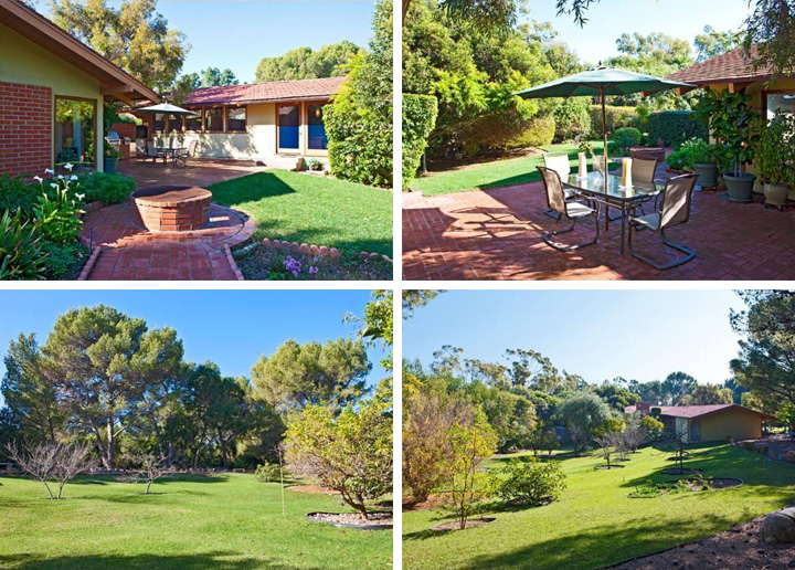 The property also includes a detached one bedroom/bath guest house, and the ground feature a fire pit, several patios and terraces, fruit trees and a small stretch of beachfront.