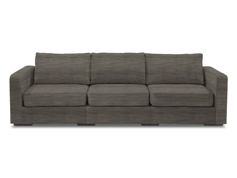 The clean lines of this gray, tweed sofa combined with the ample seating width, offers both aesthetic and comfort benefits. The tweed fabric provides the benefit of being machine-washable and durable, ideal for homes with pets.