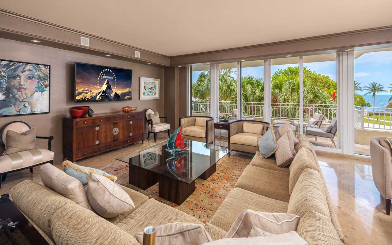 One of many words that beautifully describes this 6,701-square-foot, multi-level apartment, which feels like living in a waterfront home and is located in incredible and exclusive Ocean Club on Key Biscayne.