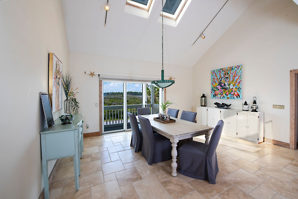This elevated oceanfront beauty has over 7,00 sqft with walls of window and doors that provide stunning panoramic ocean and guana lake forever views. A total of 6 bedrooms, 5 baths and several flex and gathering rooms. The island-style pool is located on the guana side of the house.