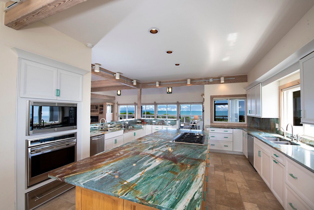 Enjoy 3 levels of living with oceanfront decks on the 2nd and 3rd  floors and an elevator that opens directly into the master suite. A newer kitchen with an abundant of quality includes the best in appliances and custom sea glass handles. The screened outdoor kitchen is located off the kitchen/family room.