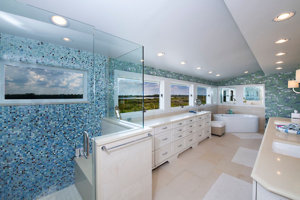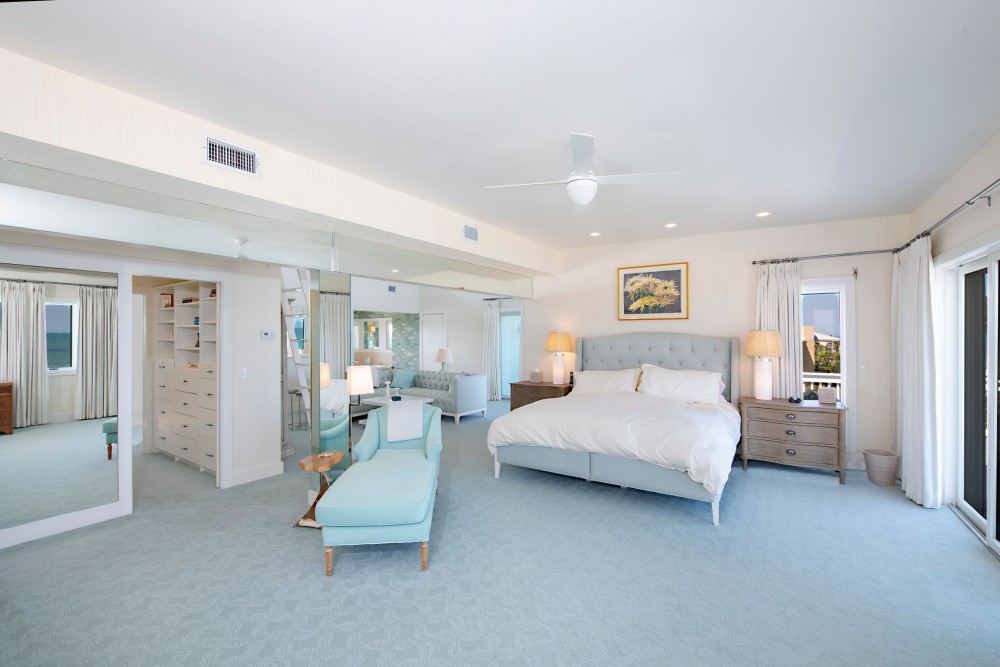 The newly renovated 3d floor master suite has custom cabinetry, a wine cooler, large walk-in shower with floor-to-ceiling glass tile and more guana views, a soaking tub with champagne bubbles, a loft and a wrap around oceanfront deck.