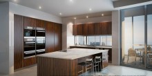 Most living spaces offer residents balconies from 800 to 1,600 square feet, an opportunity that makes each of these apartments feel like a penthouse. Balconies feature private pools and summer kitchens for outdoor entertaining. Layouts are outfitted with European design finishes and European cabinetry complete with Miele appliances, Dornbracht fixtures and Poggenpohl kitchens.