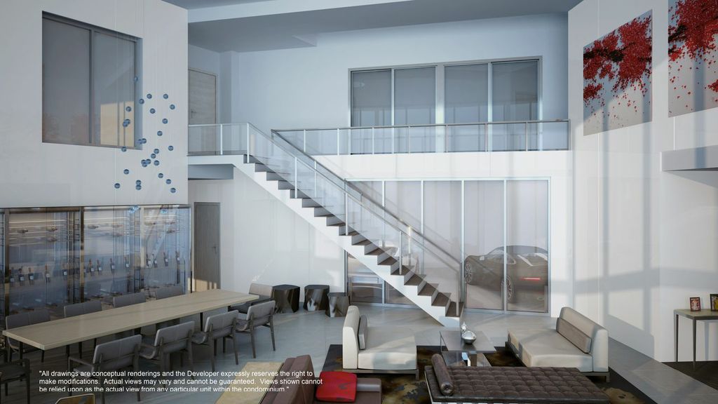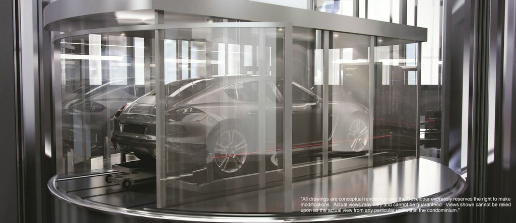 The building is also a great spot for car lovers. Scan your vehicle at ground level, drive onto a glass turntable elevator and enjoy the ride to your apartment. If you’re not done gazing at your gorgeous luxury vehicle, never fear: your automobile is easily viewed from your residence.