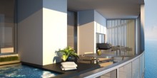 The building features designs by Sieger Suarez Architectural Partnership, massive glass windows, private pools in each unit and summer kitchens.