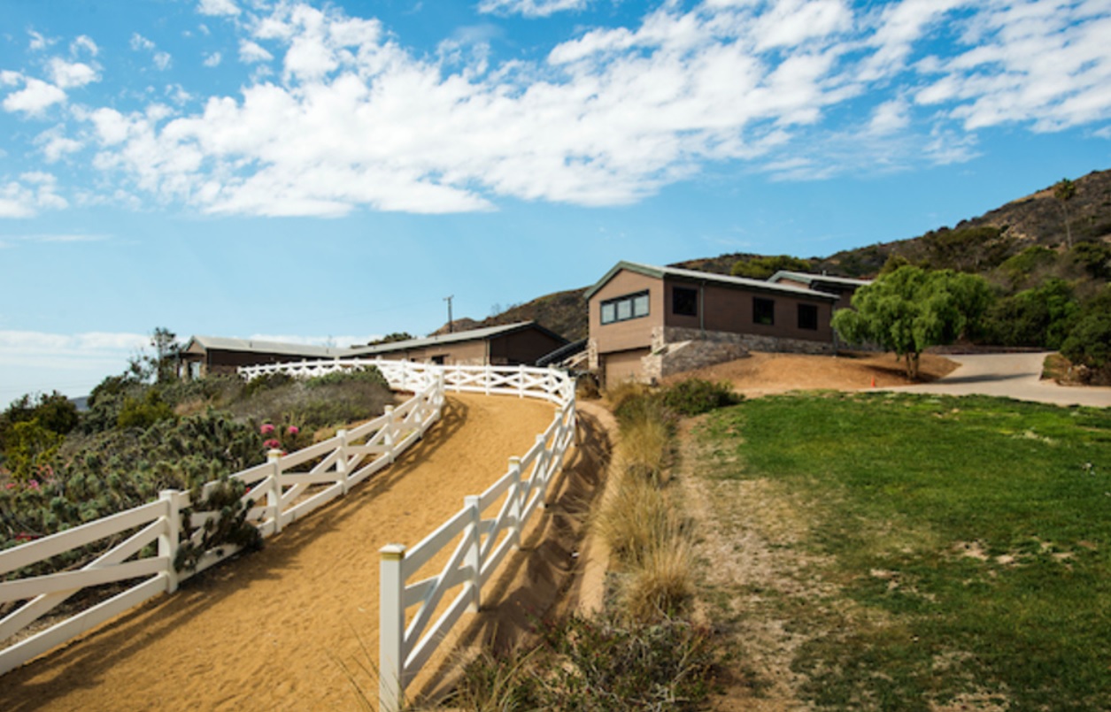 Behind a private gate overlooking Malibu’s beautiful ocean, 450 feet of frontage offers a new world class, beautifully built 9-stall barn with ocean views for each horse, a private office, studio, fruit and avocado orchards, wells, and trails.