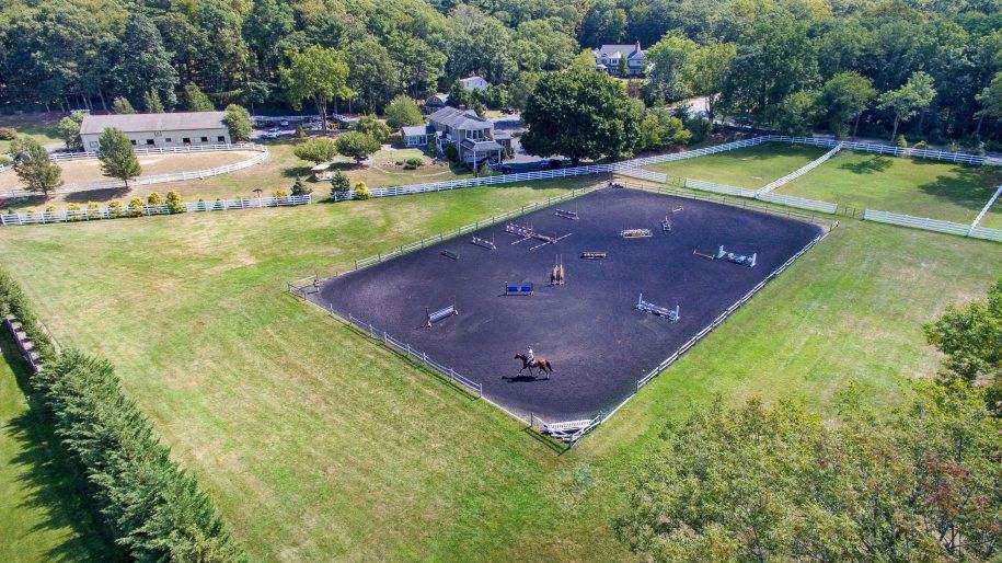 Located in Mill Neck, New York, the property houses a five-bedroom, four-and-a-half bathroom single-family home; a 16-stall barn; a four-stall shed; an area for sick and injured horses; and what is known as Nassau County’s only Olympic-size equestrian arena. It features almost seven acres of land.