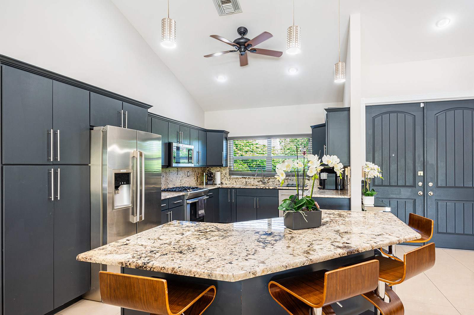 Located in one of Grand Cayman’s most desirable gated communities, this stunning Grand Harbour home features an expansive open floor plan with cathedral ceilings and outstanding views overlooking the extensive covered patio, stunning pool deck, and the extremely wide canal accessed via the composite 40ft dock. The kitchen benefits from a huge island with a built-in seating area, modern cabinets, granite countertops and backsplashes, and stainless-steel appliances, including a wine fridge. This unique home also features a master suite wing including a large bedroom and adjoining den/living area overlooking the pool and canal, walk-in closet, and ensuite. There are 2 further spacious ensuite bedrooms, 4th bedroom with a bathroom adjacent, plus a laundry room with a connected shower room/powder room. The stone paved in and out driveway leads to the double garage, and from the garage comes access to the study/mancave, offering privacy and seclusion to work from home. Minutes away from the shops at Grand Harbour, the newly developed Harbour Walk (offering a variety of shops, a gym, restaurants, and residences), the skate park, schools, and convenient access to George Town and Camana Bay beyond this house really has it all.