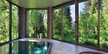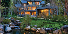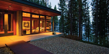 Lemelson tapped design duo Eric Thiele and Rod Ashley to design the contemporary home, which sits among towering old-growth trees on the famous lake, where California and Nevada meet. The property boasts a library, pool, sculpture garden, a dock on the lake, and guest house.