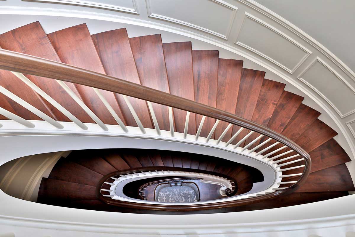 A gracious circular staircase leads to the second level featuring a master suite boasting a walk-in dressing room and lavish six-piece marble en suite.