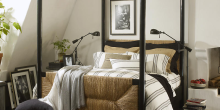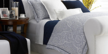 So, who better to turn to for a guide to a perfectly well-dressed bed? The designer shares, “Make the most of the centerpiece in your bedroom by dressing your bed as you would yourself–in layers. Begin with a complementary palette. Alternate patterns or stripes with solids for a classic look, or layer solids for a more modern impression.”