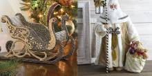 Crystal Sleigh by Jimmy Crystal ($9,995) and MacKenzie-Childs Snow Father Christmas ($575)