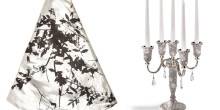 Aviva Stanoff Rock Star Holiday Tree Skirt ($448) and Crystal Five Light Candelabra (2,249)