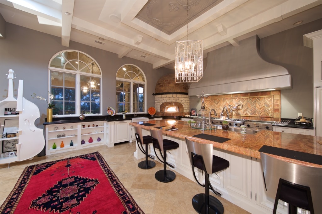 The gourmet kitchen is an epicurean’s dream, complete with a pizza oven.