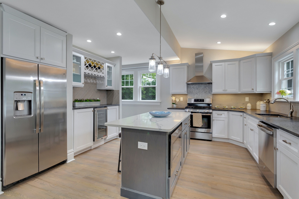 Stunning South End Colonial! Newly renovated, turnkey home perfectly located in Montclair! Close to the MTC & GR NJTransit train stations, NYC direct Bus, and major highways w/ easy NYC commute. Very special property, fully-renovated and ready to welcome you home! Spacious, open-concept first floor layout with an incredible designer kitchen that flows into the vaulted ceiling greatroom addition. Beautiful all-new bathrooms, hardwood floors and recessed lighting throughout, all new mechanicals, plumbing, electric, etc. Finished basement with living room, bedroom, full bathroom and laundry room also works well as in-law suite. Large fenced-in and landscaped backyard, new driveway, blue stone walkways, and over-sized 2-car detached garage. Shared-driveway with new construction next door.