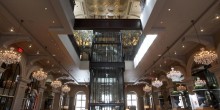 With many designers now choosing to renovate rather than remodel historic properties, this is a prime example of how a careful eye can make all the difference. For example, on the third floor RH installed a $1,895 trickling fountain, a $1,470 Provence wicker sofa, 1950s-style leather chairs that retail for $1,800 and the pièce de résistance, a glamorous $895 chandelier.