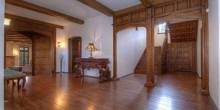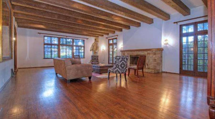 The space was built in 1924 but features plenty of modern updates, boasting a state of the art kitchen, butler’s pantry, hardwood floors, stone fireplaces, pub room, five bathrooms, six bedrooms, swimming pool, finely manicured grounds, spa and an additional guest house and pool house.