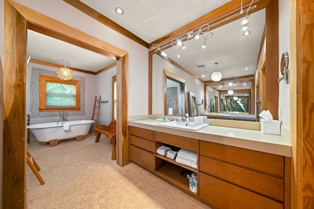 This stunning property consists of a 3,792 sq. ft. three-bedroom, two-and-a-half bath main house with panoramic views of the ocean and bay. A private courtyard with open air sitting area, dining area and a pool with outdoor shower are just some of the highlights to the property. There is also a 723 sq. ft. one-bedroom, one-bath guest cottage, with warm-wood vaulted ceiling and bright decor. All only a three-minute walk to our dazzling pink sands beach.