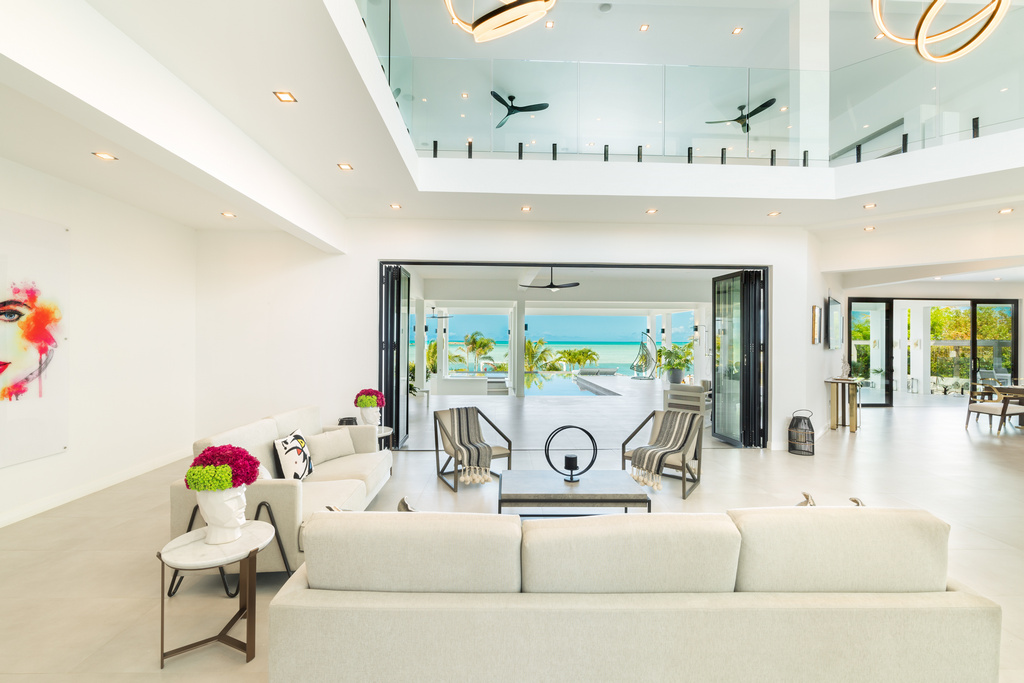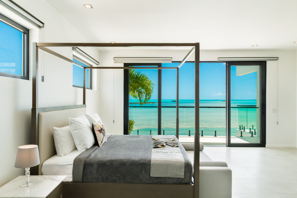 As you reenter the villa and climb the grand staircase to the second level, you’re met by an inviting open-plan media room with floor-to-ceiling sliding glass doors and a large balcony that provides stunning elevated ocean views. The second-floor bedrooms flow seamlessly from one to next, each with its own balcony and exquisite en-suite bathroom and highest quality finishes and fixtures. In addition, the select master bedrooms are exceptionally spacious, with full walk-in dressing rooms and master bathrooms with tremendous shower rooms designed to face the ocean so you can enjoy the stunning turquoise waters of the Caicos Banks.