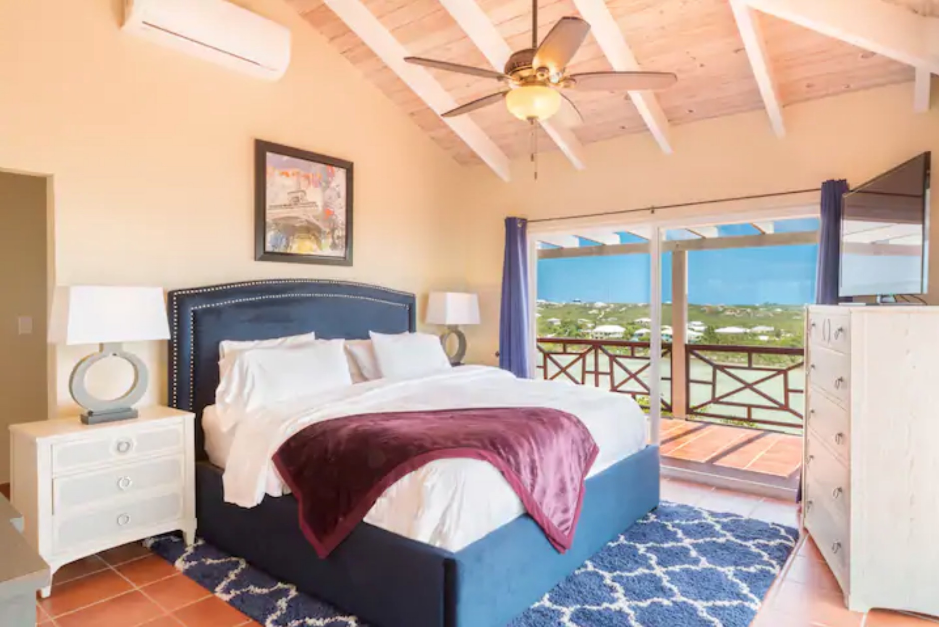 The upper floor of Villa Panorama is where you will experience the master bedroom and its en-suite bathroom, a second bedroom and en-suite and the family room or media room. The lower level comes complete with a gourmet kitchen inclusive of granite countertops and high-end appliances and a spacious living and dining room. The lower level also has a third bedroom and bathroom. Another one of Villa Panorama’s great features is the wrap-around decks that allow you to explore the 360-degree views of Flamingo Lake and the Turquoise Banks. To the East of the main Villa sits a standalone one-bedroom cottage for visiting family, friends, or Nanny. Villa Panorama makes for a perfect full-time home, vacation home, and short-term rental property. Access to all of the island’s restaurants and grocery stores is a short 15-minute drive from the villa, so you can remain connected when you want yet enjoy full privacy when you don’t.