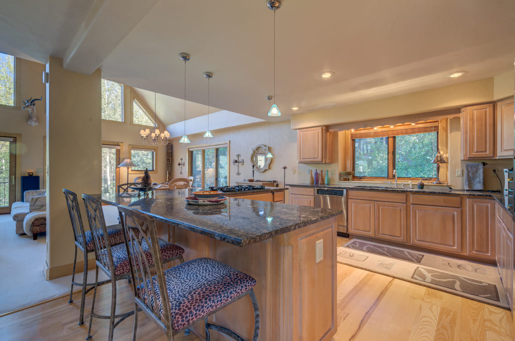 Designed and built in 2000, by the current owner, this 3 beds, 3 baths, 2,724 SqFt townhome exudes love, care, and attention to detail. You are taken back by the soaring vaulted ceilings, endless windows, gas fireplace, and beautiful white designer wool carpets of the great room that make entertaining classy. This kitchen gives the owner that coveted cooking experience with stainless appliances, granite countertops, a gas stove, recessed and pendant lighting, custom cabinetry, a kitchen island, and the list goes on. In fact, the entire residential lighting experience was professionally designed. On the main level, double doors provide the ultimate entrance to the primary suite as exposed wooden beams create a framework to enjoy views of the Flattops Wilderness Area. The primary bathroom has every imaginable comfort beginning with a luxurious soaking tub, standing shower, double sinks with mirrors, and of course, a walk-in closet. The lower level has two nice-sized bedrooms and walk-in closets with a full bath finished with Saltillo tile.