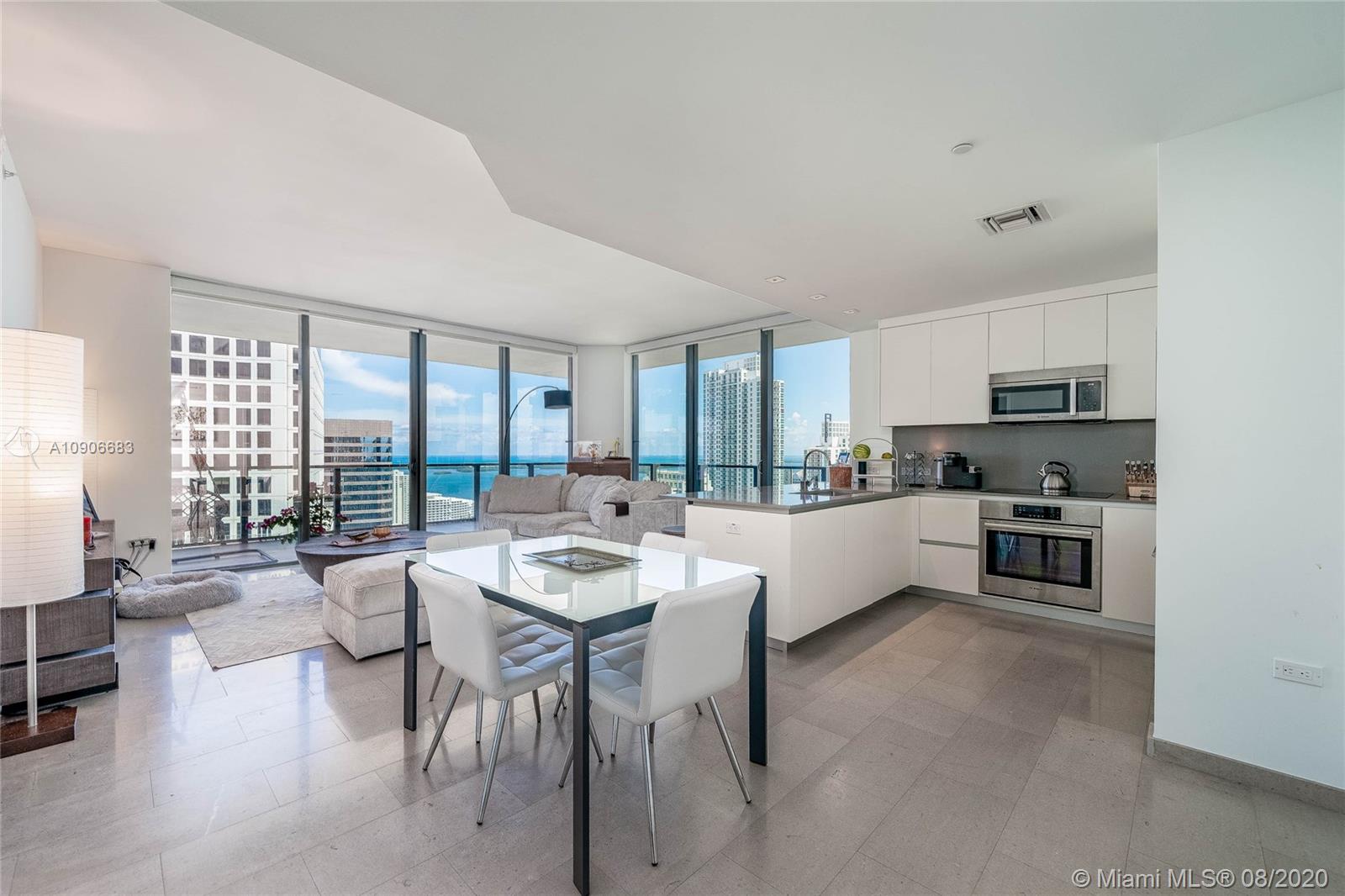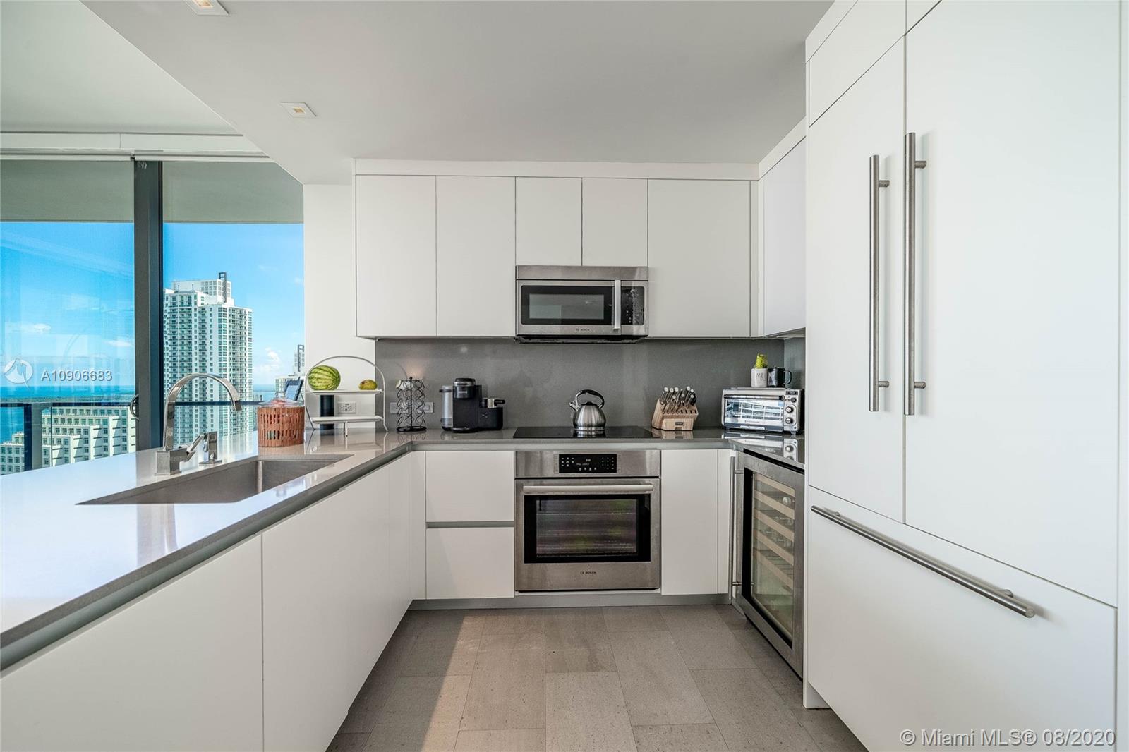 Enjoy one of the best views of the water and Brickell in this beautiful corner apartment. Featuring: Modern kitchen with Italian cabinetry made by Italkraft, premium Bosch appliances, U-line 48-bottle temp controlled wine cooler, electric shades and blackouts in every room, floor-to-ceiling impact windows, and marble floors throughout. Enjoy the oversized balcony that integrates perfectly with the living room for a mix of outdoor and indoor entertainment. Amenities include an on-site 24/7 concierge, 24-hour valet services, a fitness center with a yoga room, a BBQ area, a children’s playroom, a fitness center, a swimming pool, a private spa, and direct access to the Brickell City Centre where you have various restaurants, shops, and entertainment!