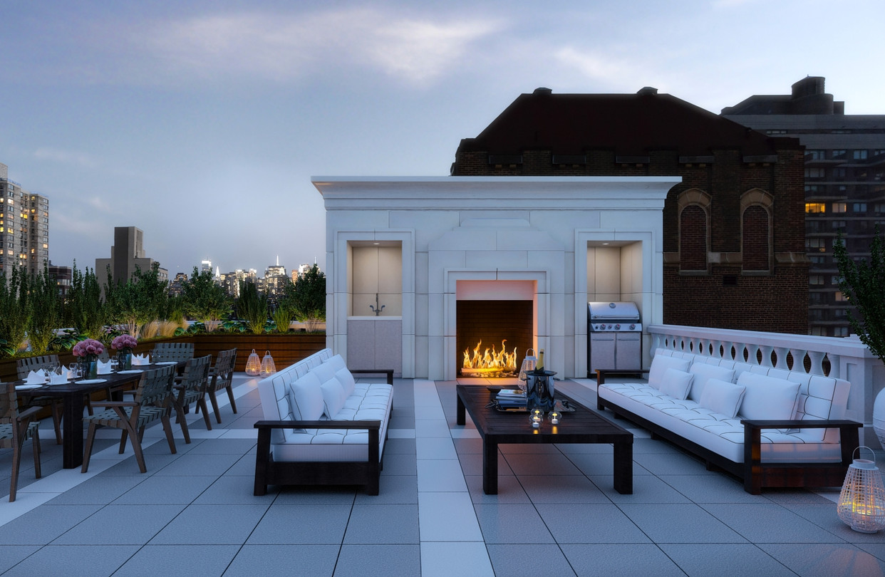 Imagine experiencing this roof deck with its private outdoor heated pool, wood-burning fireplace, wet bar and built-in Wolf barbecue. Surely, this rooftop terrace makes for a straight-up, perfect Manhattan. Party, that is.