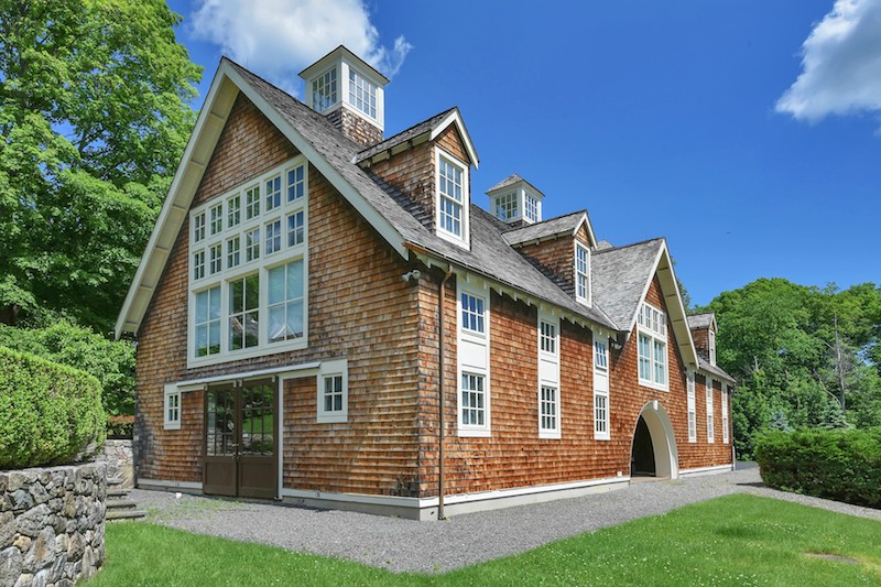 23 + Acre Riverfront Estate, Mahwah, New Jersey – 30 minutes from New York City. The Greenwich architectural firm of Shope, Reno, and Wharton created a stone and shingle style masterpiece which was built by James Nigro with no expense spared. The views are breathtaking and extraordinary. The 9 stall barn opens to a limestone jumping area, expansive paddocks and trails along the Ramapo River. Above the stalls is a massive artists’ loft with separate living quarters encompassing 3 bedrooms and 2.5 baths. Infinity pool, hot tub, stone BBQ, make this a once in a lifetime opportunity. Adjacent 1.2 acres with 2 antique homes available to purchase for $895,000.