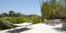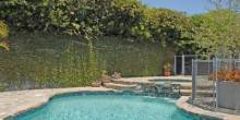 Built in 1959, the 2,806-square-foot home was renovated in 2004 and according to The Los Angeles Times, had been leased out at $10,995 per month. The single-story home is perched above the 52-acre Woodrow Wilson Preserve, according to the listing, and includes “beamed 22-foot ceilings, gourmet eat-in kitchen, river-rock fireplace, media/den, spa baths, lagoon-style pool with spa and fire pit, multi-level deck, outdoor gym, 2-car garage and specimen plantings.”