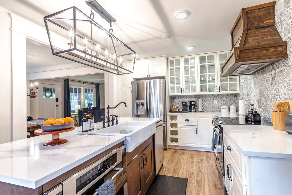 Upon arrival, you’ll be greeted by a large front yard and a charming covered front porch, perfect for relaxing with a cup of coffee or watching the neighborhood go by. Inside, the home boasts beautiful historic windows, a cozy wood-burning fireplace with built-in shelving, and an open floor plan that flows seamlessly between the living room, dining room, and fully remodeled kitchen. The kitchen beautifully combines updated appliances and finishes with the home’s timeless historic charm, making it a perfect space for cooking and gathering with family and friends. The first floor offers a private bedroom with a generous walk-in closet, a convenient laundry/mudroom, and a remodeled bathroom. Upstairs, you’ll find three additional spacious bedrooms, all filled with natural light from large windows, as well as a second remodeled bathroom.