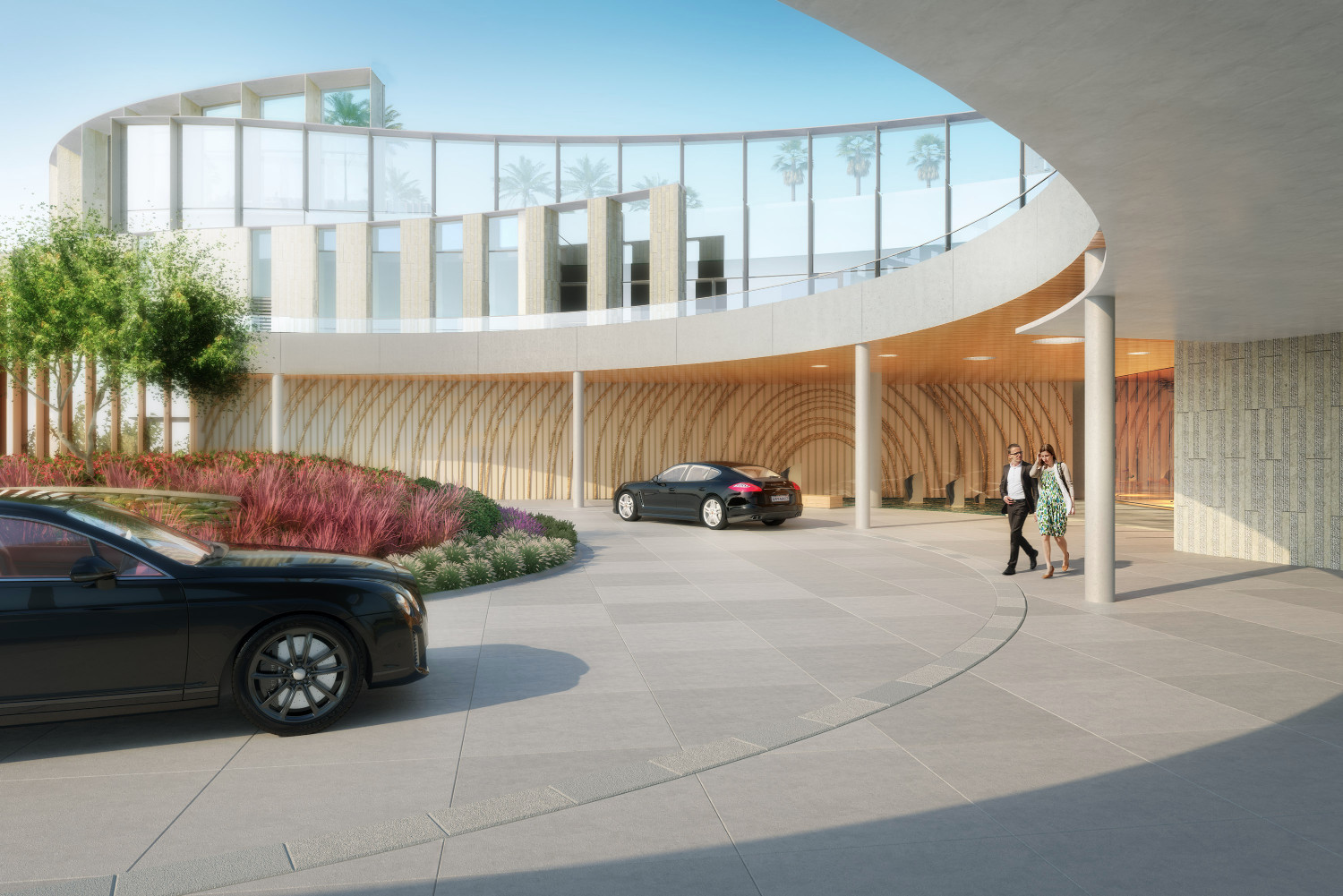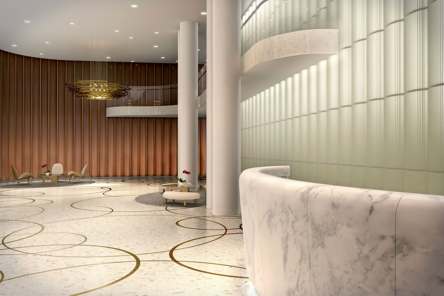 Designed by New York-based architecture firm Kohn Pedersen Fox (KPF), the building is intended to mimic the fluid forms of the shoreline and the sea with a “double-nested curve with rolling facade and scrolling base,” as the website describes.
