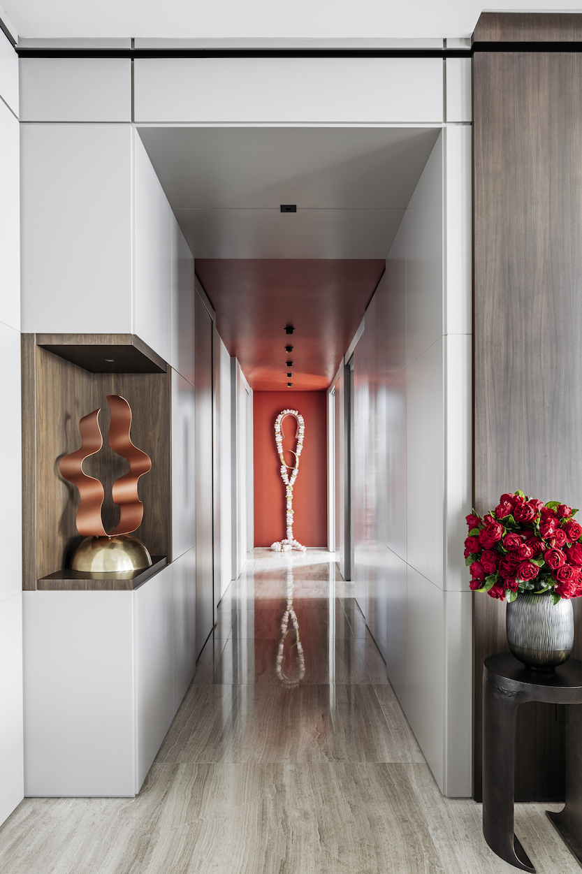 Yes, this would be a major challenge. But fortunately for Diaz-Velasco, she had a solid relationship with her clients from Ohio and the couple blessed the architect’s ambitious plans to execute a total gut intervention of the space. Including a full interior architectural redesign and renovation, she would leave no inch of the penthouse untouched by her talent, including building custom structures to mold and stretch the space within the existing skeleton. And that is exactly what she has developed a reputation for in Miami and beyond—a talent for crafting structures and spaces using a holistic approach and what she calls “emotion-driven design dialect.”