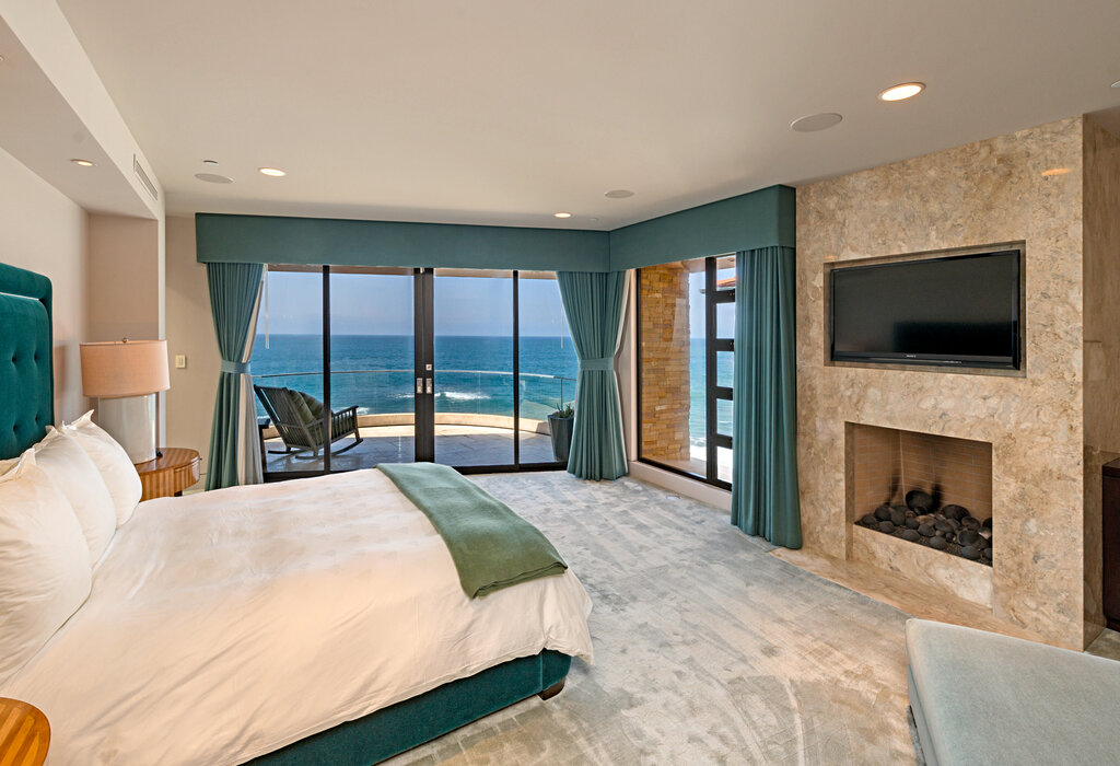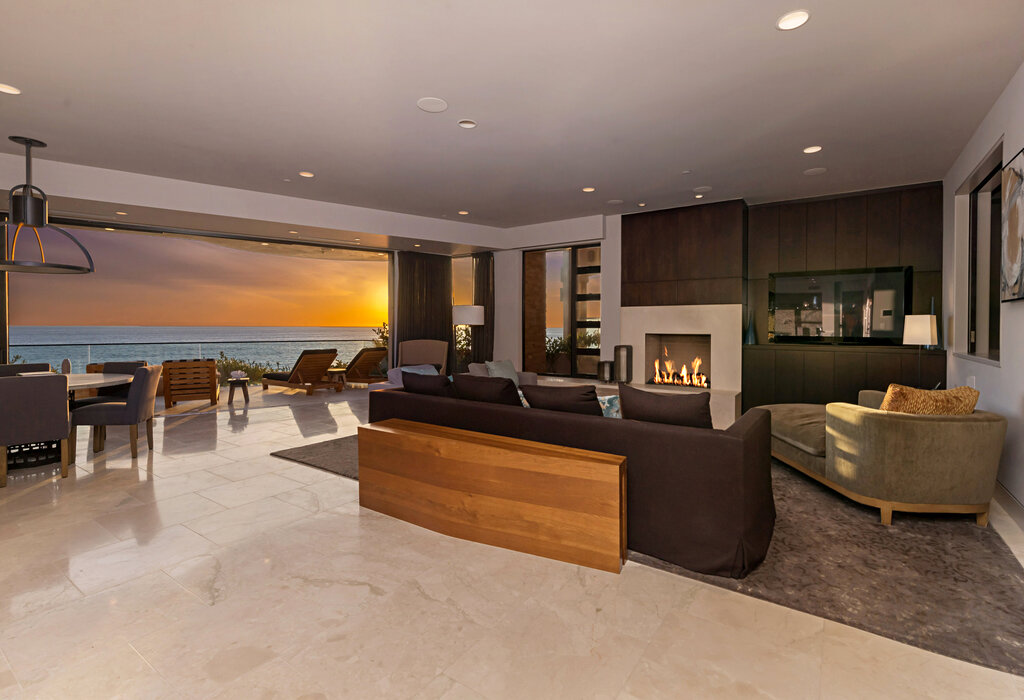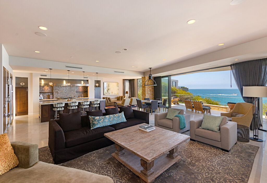 Spectacular oceanfront Laguna Beach home nestled above the bluffs of Wood’s Cove. Warmth and sophistication are beautifully paired with extraordinary materials and sleek contemporary lines. Enjoy dramatic ocean and sunset views framed by floor-to-ceiling windows with sublime interior spaces spilling out onto spacious terraces to bring the outdoors in. The floor plan unfolds over two levels and includes an open concept living room with chef’s kitchen and butler’s pantry, formal dining room with ocean views, large media room with wet bar, wine storage, and a top-of-the-line electronics system. There are four en-suite bedrooms including the master suite with office, private terrace, fireplace, and a sizable bathroom overlooking the crystal blue ocean below. This lavishly appointed home includes controlled gated entry, Crestron whole-house system, exotic wood cabinetry, imported limestone floors, Weiland sliding doors, wood and glass interior doors, and electronic shades.