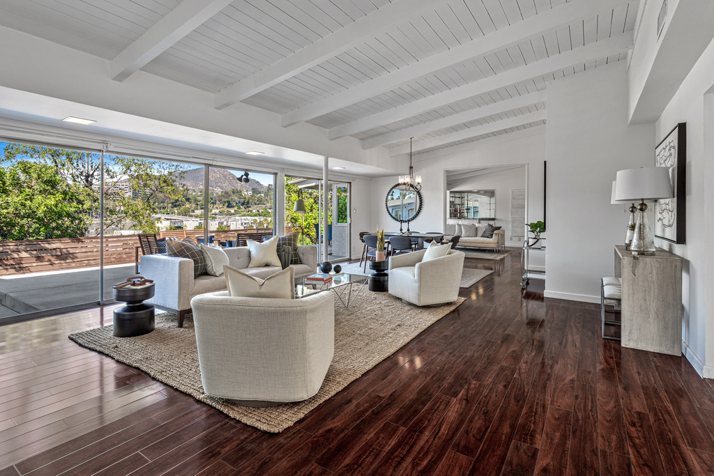 What would you do with a Hollywood Hills home that sits on OVER half of an acre lot? What about entertaining outside and taking in spectacular panoramic views? Or dreaming about what you could do with all the extra land? Views of the Hollywood Hills and Studio city greet you as you enter a light-filled open living space, transitioning to a cozy family room with a wet bar. A well-maintained cook’s kitchen is perfect for entertaining, with tranquil views of the spacious backyard. Walls of glass accentuate this home making indoor/outdoor living seamless. Space is plenty with a primary suite + office space and bathroom as well as 3 additional bedrooms and bathrooms and a 2nd-floor kitchenette. Relish in the peace and quiet in one of the most desirable neighborhoods while being just minutes from all the action!