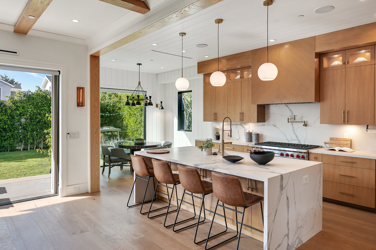 You’ll never want to leave this new construction dream! This modern farmhouse has it all. First: location in the alphabet streets of Pacific Palisades; minutes from Palisades Village. Second: Space to entertain with almost 5,000 sq. feet of bright living space spanning 3 levels, 7 bedrooms and 8 baths. Third: One of a kind details that you have to see to believe. How about custom woodwork, tall wood beamed ceilings, 2 marble fireplaces, a floor to ceiling wine rack, and a hidden walk-in pantry in the high end Chef’s kitchen? What about your own private theater and gym, and a lush backyard with fire pit and built in bbq? This and so much more. Truly a one of a kind gem that’s fresh and new!