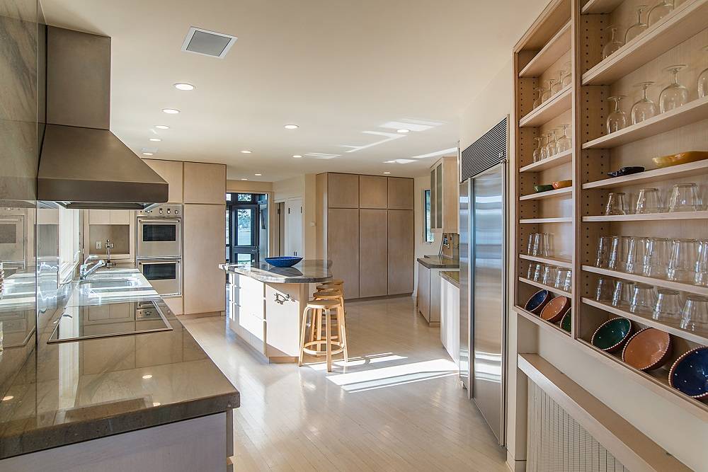 The 3.5-acre property resembles an island retreat boasting a main house with six bedrooms, seven baths, two offices, an exercise room, and a steam room, as well as a two-bed, two-bath cottage and a one-bedroom boathouse nearby.