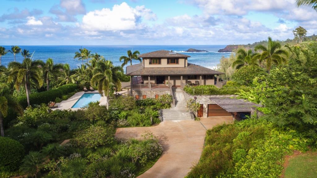 The property offers sweeping ocean views, from Bali Hai to Secret Beach and the Kilauea Lighthouse. To the south are excellent mountain views of Kauai’s northern mountain range.