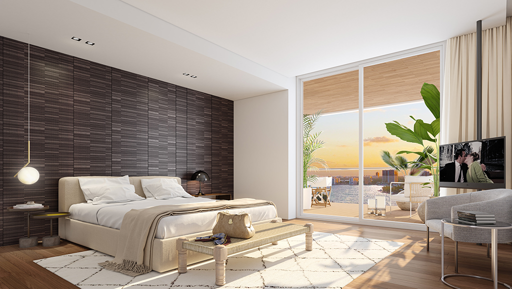 The signature modern residences will feature elegant private elevators, stunning direct water views and will be delivered fully finished with European custom wood flooring and exclusive design packages. Expansive, oversized wraparound direct bay finished terraces, complete with outdoor cooking facilities for entertaining, offer dramatic views of Biscayne Bay, the Atlantic Ocean, and the Miami skyline.