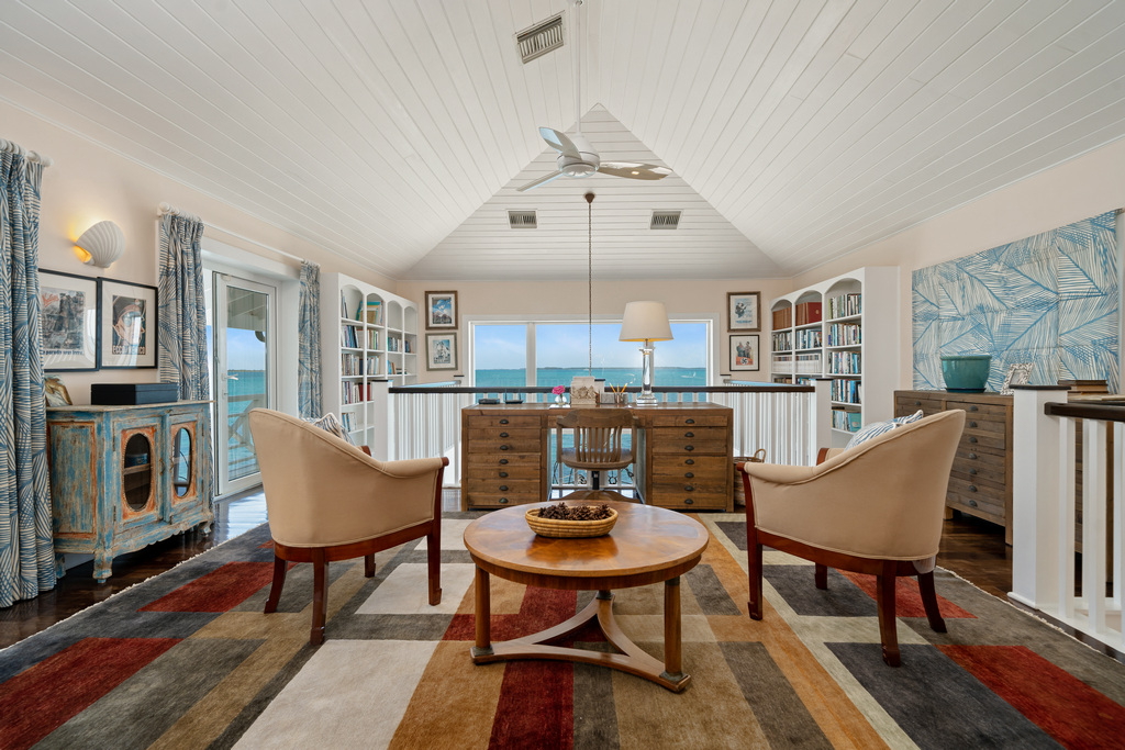 This property comprises two waterfront lots that are blended perfectly to create an environment that is elegant and magical. The welcoming patio area, infinity pool, and garden is the perfect place to relax and enjoy island life. The main house, clad in precious natural light, is set on two levels with vast windows and doors allowing for ocean views from all rooms. The main living room, dining room, and office are focal points of the home with floor-to-ceiling windows extending two stories and providing stunning views. Also on the main level is a modern kitchen with a breakfast area, family room, and a separate guest/staff area with two bedrooms, one bath, and a galley kitchen. On the second level are three guest bedrooms and a very spacious master suite with access to a lovely wrap-around terrace. The iconic lighthouse was built in the 1950s. Connected to the main house by a stone bridge, it has five stories of living space including 2 bedrooms, 2 baths, and a kitchen. The property has two automatic gates, a large basement for storage, and a wood deck for waterfront lounging.