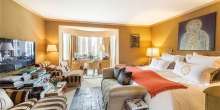 The interior of each room––multiple living rooms, a dining room, a drawing room opening to the garden, a “plant room,” and a wine cellar, among several others––is embellished with a refined color scheme and lavish décor.